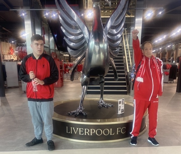 CN was kitted out in his brand-new Liverpool tracksuit and scarf while LO showed solidarity with his own red tracksuit top. At the end of the outing the pair travelled back from Merseyside full of sporting spirits and vowing to return soon, hoping to see more silverware in the trophy cabinet!